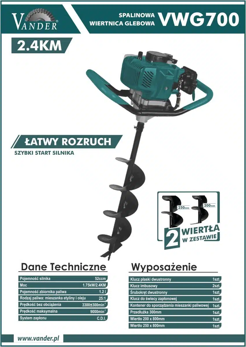 1 opinia dla Wiertnica do Gleby Spalinowa VWG700 VANDER 2.4 KM