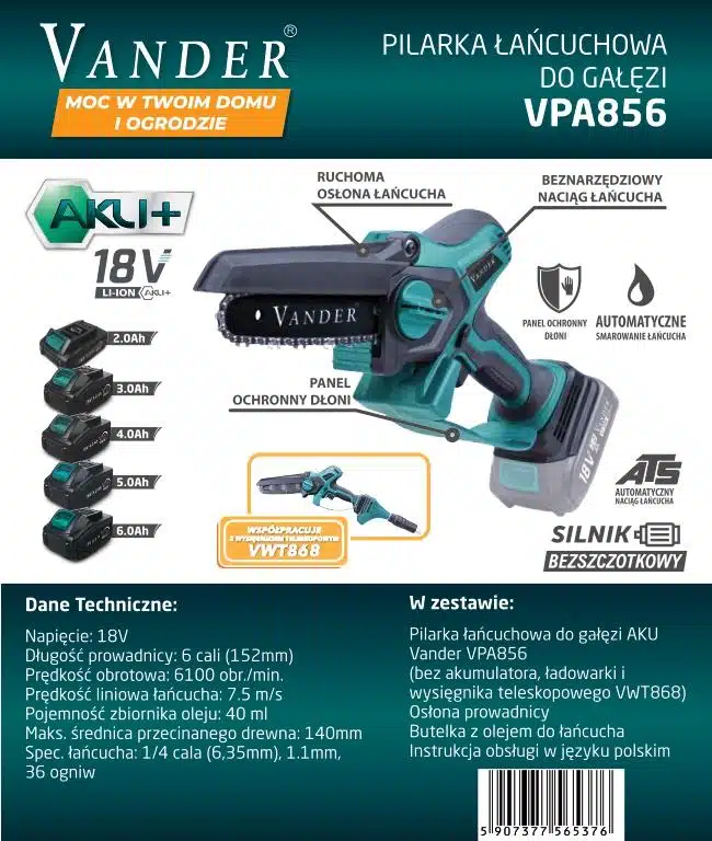 Pilarka Łańcuchowa Do Gałęzi Akumulatorowa VPA856 VANDER